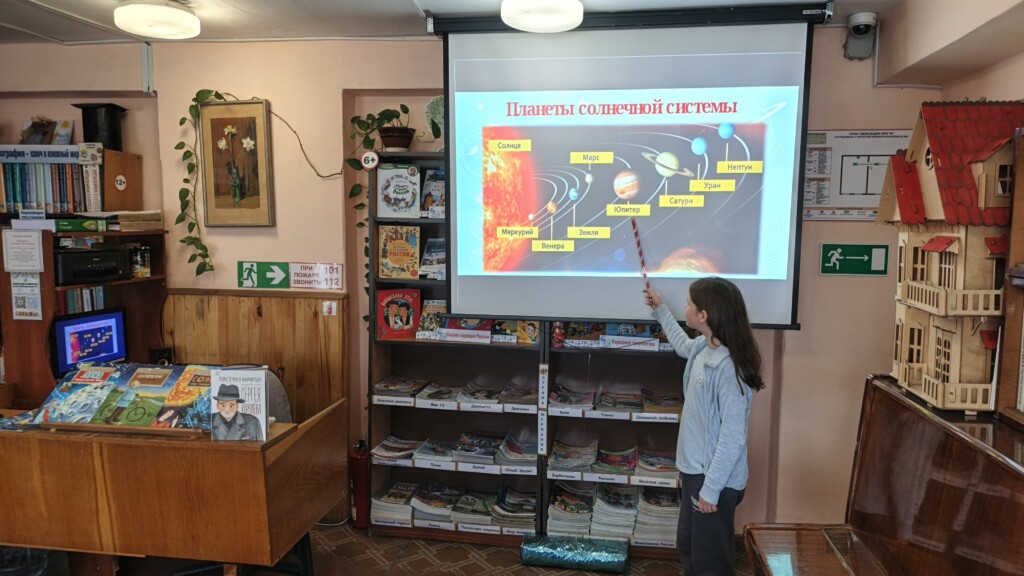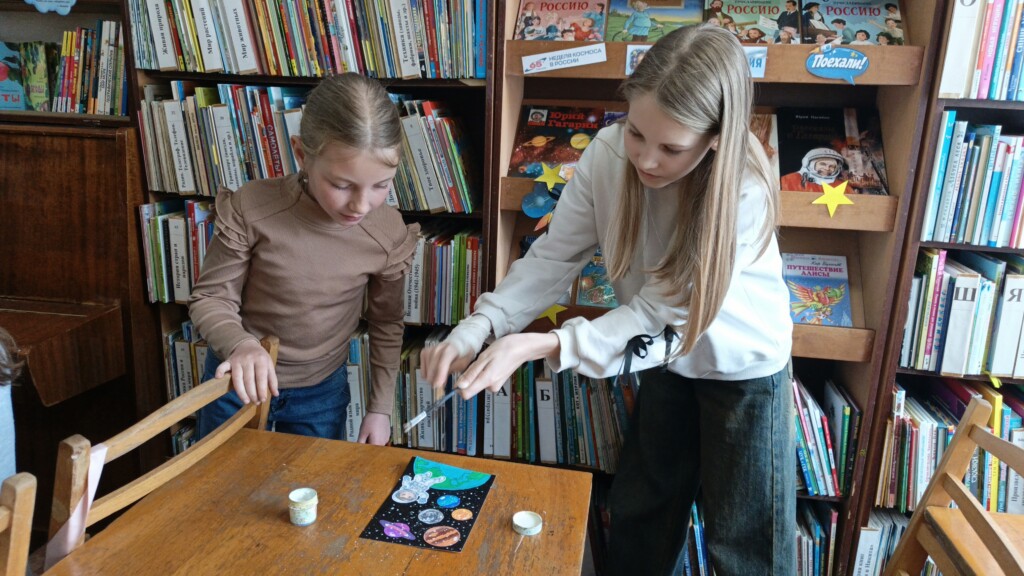 В рамках Недели космоса библиотека-филиал №4 организовала несколько мероприятий. На часе открытий «От Земли до звёзд» ребята отправились в захватывающее путешествие по Солнечной системе и вспомнили все планеты — от раскаленного Меркурия до ледяного Нептуна. Дети узнали удивительную судьбу Юрия Гагарина: о его детстве, пути к звёздам и легендарном полёте, изменившим историю человечества.