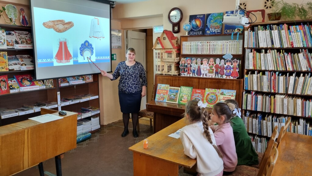 В библиотеке состоялась увлекательная этнографическая игра «Традиции народов России», которая позволила ребятам погрузиться в многообразие культур нашей страны. Участники познакомились с особенностями национальной одежды и традиционными блюдами разных народов, узнали об обычаях и традициях, объединяющих многонациональную Россию. В ходе игры дети с интересом изучали элементы этнических костюмов и пытались угадать, что за предметы перед ними. Например, участникам предстояло определить, что «тухья» — традиционный головной убор чувашских женщин, богато украшенный бисером и монетами, а «кухлянка» — рубаха из шкур у народов Севера.