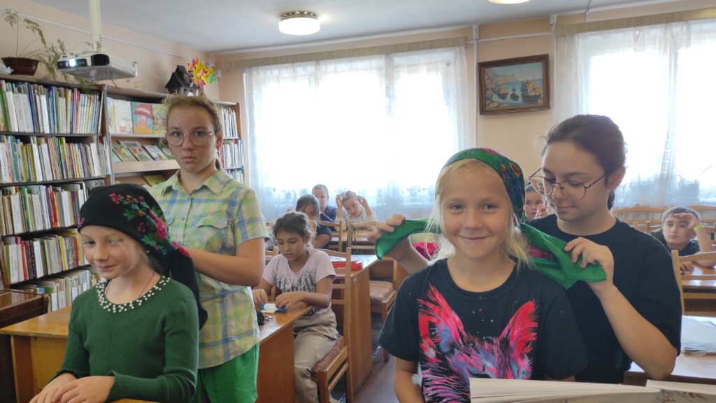Ребята с удовольствием приняли участие в увлекательных конкурсах. Особенно запомнился конкурс «Матрёнушка», где участники демонстрировали своё мастерство в повязывании традиционных русских головных уборов.